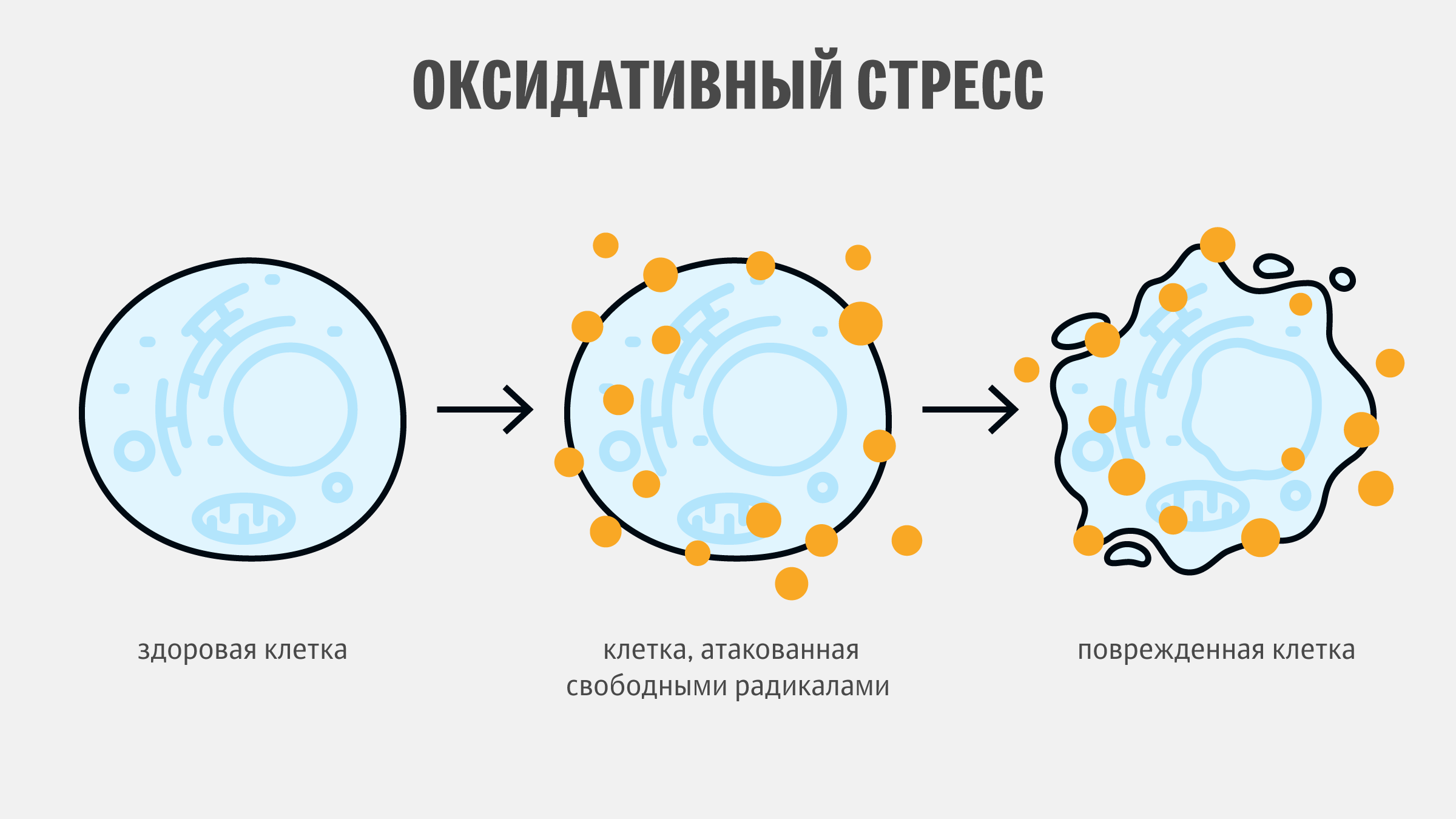 При производстве энергии, ряде физиологических процессов и под воздействием внешних факторов, в нашем организме образуются свободные радикалы. В норме эти частицы помогают организму реагировать на встречи с вредоносными вирусами, бактериями и мутагенами — они временно активируют воспалительную активность, которая возникает при наличии угрозы, и проходит после того, как угроза миновала. Однако под воздействием различных факторов (плохая экология, вредные привычки, УФ-излучение, фастфуд, длительный стресс, переутомление, нарушение сна и другие) количество свободных радикалов может расти и привести к окислительному стрессу, вызывая каскад системных воспалительных процессов, приводящих к хроническим заболеваниям.