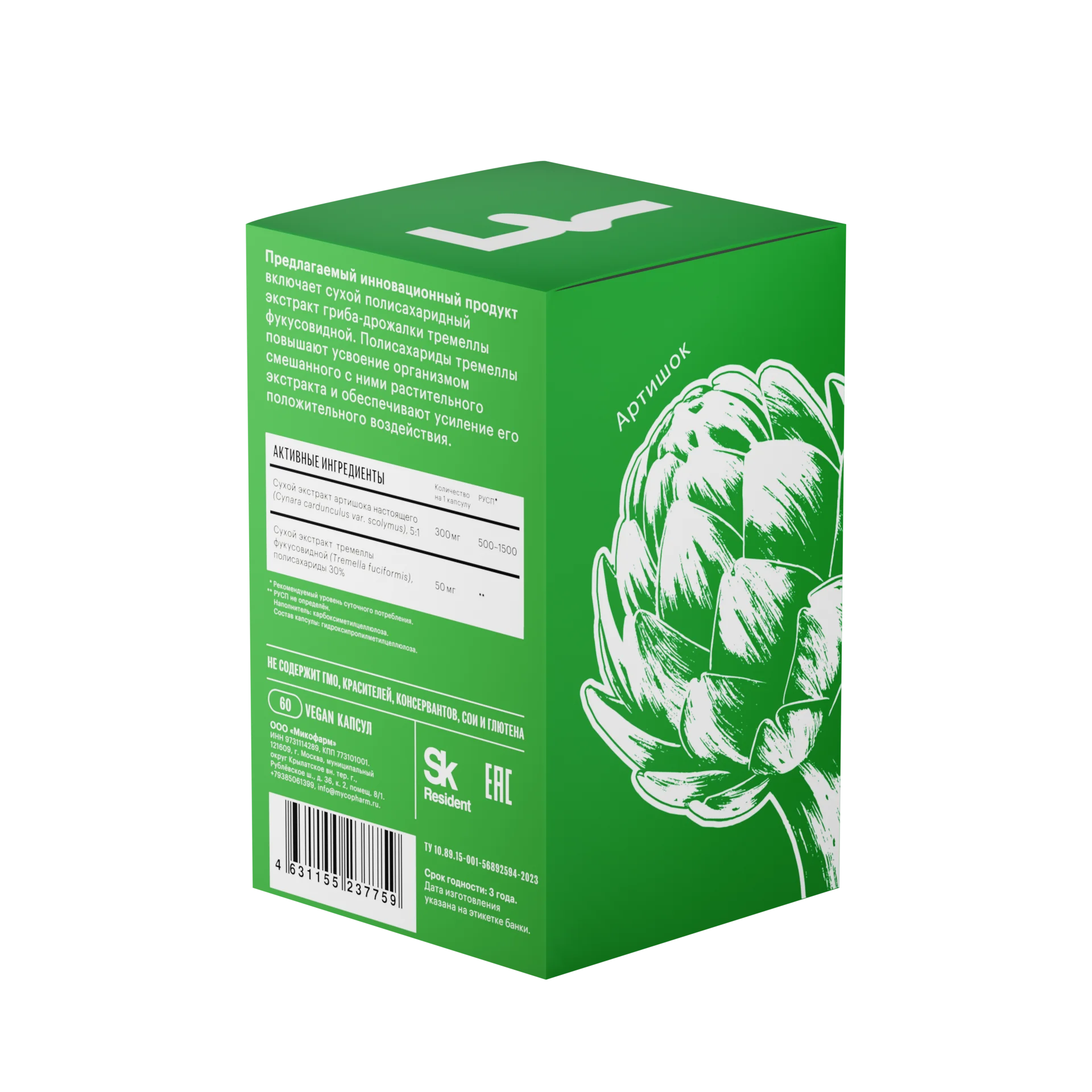 Предлагаемый инновационный продукт включает сухой полисахаридный экстракт тремеллы фукусовидной (экстрагент — очищенная вода). Как было установлено, полисахариды этого гриба существенно повышают усвоение смешанного с ними водорастворимого растительного экстракта и обеспечивают его более выраженный эффект положительного воздействия на организм.