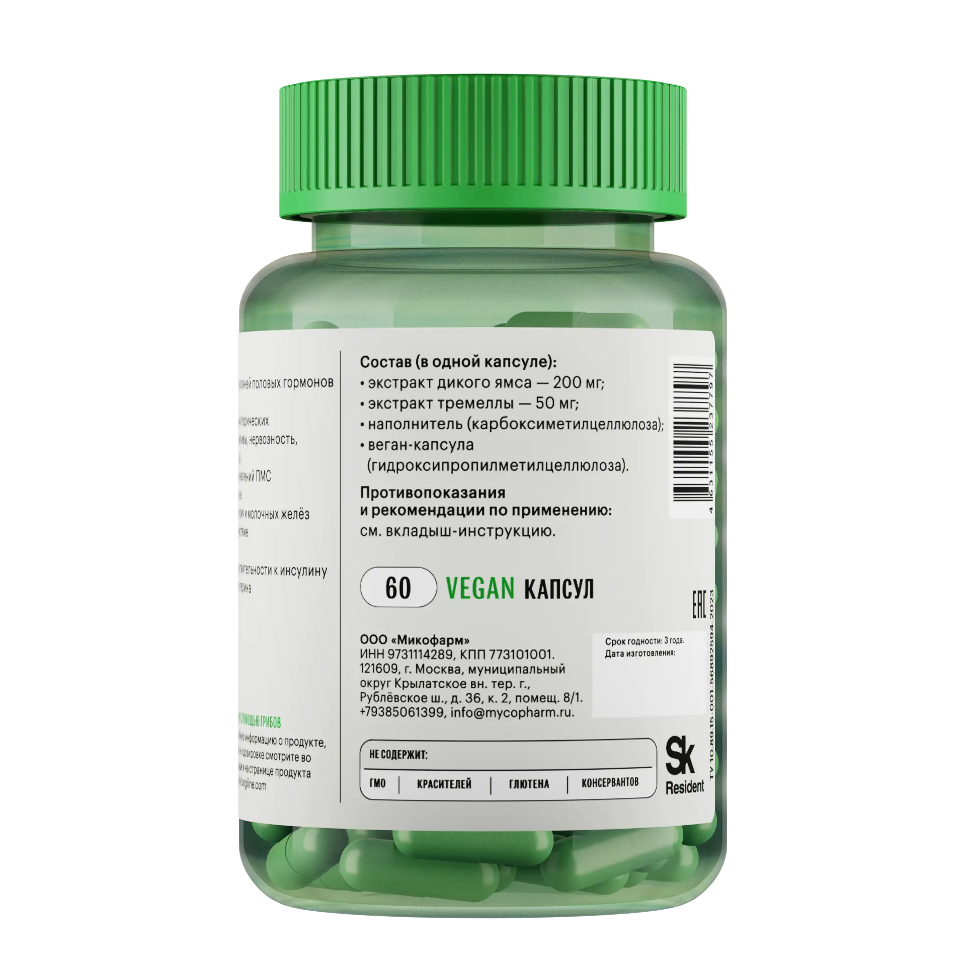 Содержит диосгенин, обладающий прогестроноподобным действием. Недостаток прогестерона может вызывать нарушения цикла, менструальные боли, ПМС и эмоциональную нестабильность. Диосгенин помогает уменьшить эти симптомы.