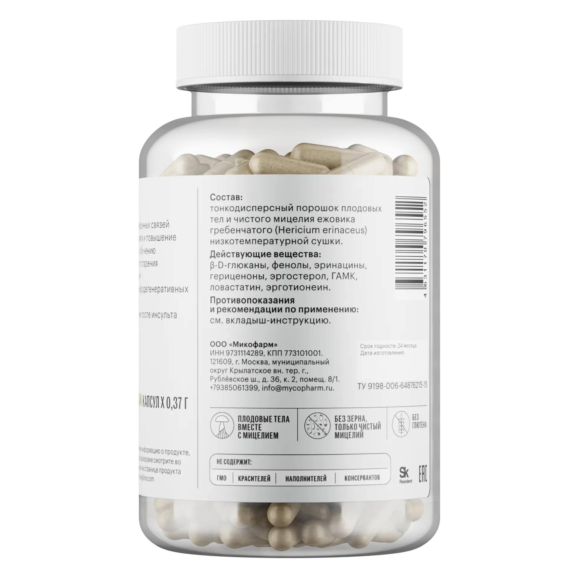 «Ежовик гребеначтый+» — супер-добавка для повышения концентрации, улучшения памяти и способности мозга к запоминанию. Выраженный ноотропный эффект достигается за счет повышенного содержания в продукте эринацинов ежовика гребенчатого благодаря использованию как плодовых тел, так и чистого культивированного незернового мицелия. Эта комбинация особенно помогает в периоды повышенной умственной активности, например — при многодневном рабочем аврале или при интенсивной подготовке к экзаменам. В отличие от классического «Ежовика гребенчатого», этот вариант добавки оказывает куда более яркий и выраженный стимулирующий эффект.