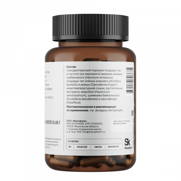 Очистить фильтрыТонкодисперсный порошок мицелия и плодовых тел ежовика гребенчатого (Hericium erinaceus) низкотемпературной сушки, тонкодисперсный порошок плодовых тел опёнка осеннего (Armillaria borealis) и рейши (Ganoderma lingzhi) низкотемпературной сушки; растительные экстракты зверобоя (Hypericum ramosissimum), шлемника байкальского (Scutellaria baicalensis) и пассифлоры (Passiflora).