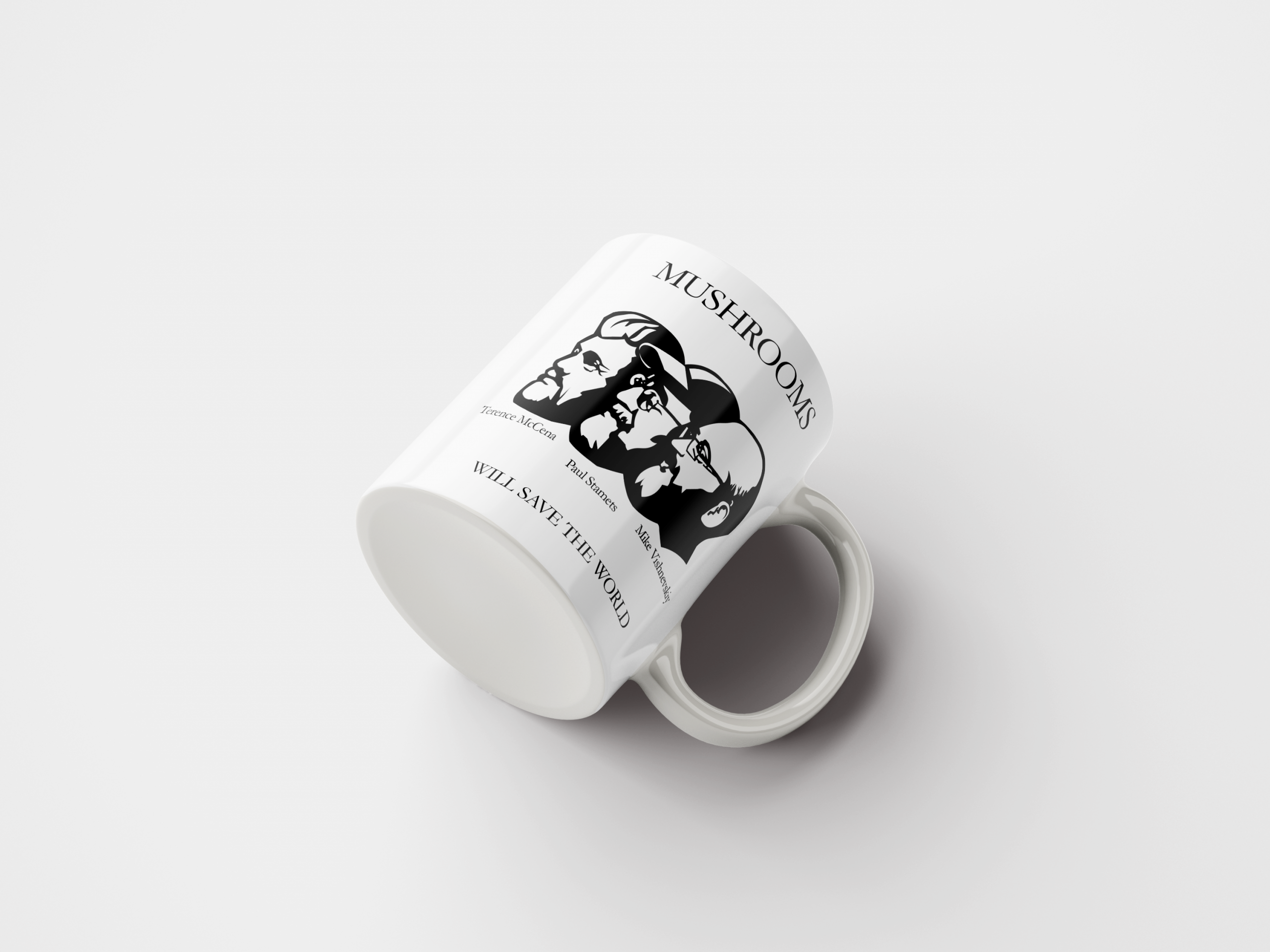 Кружка «Will save the world». MUSHROOMS. Terence McKenna, Paul Stamets, Mike Vishnevskiy.