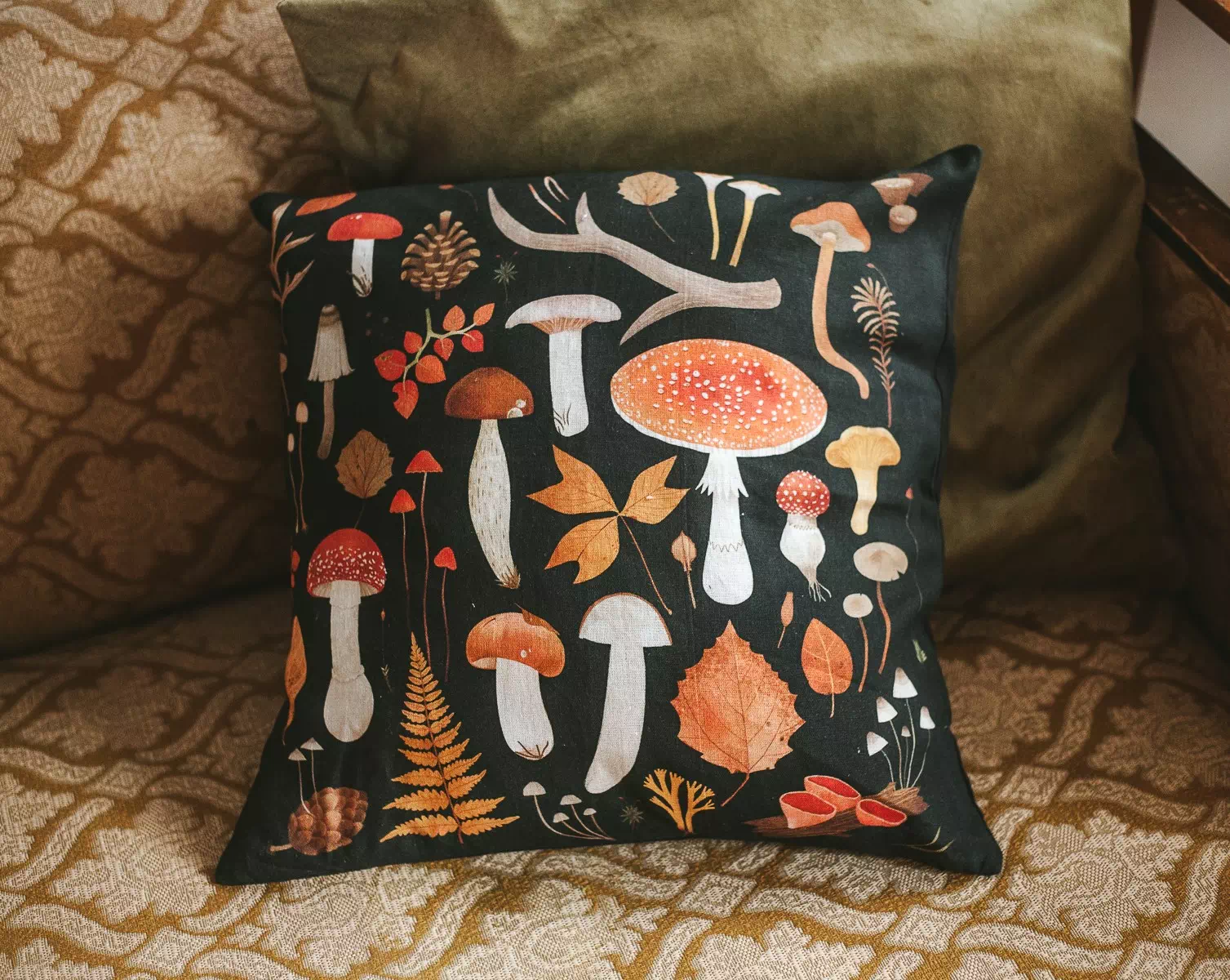 Льняной чехол для подушки «Темный Мухомор» • Сувенир от Fungiline