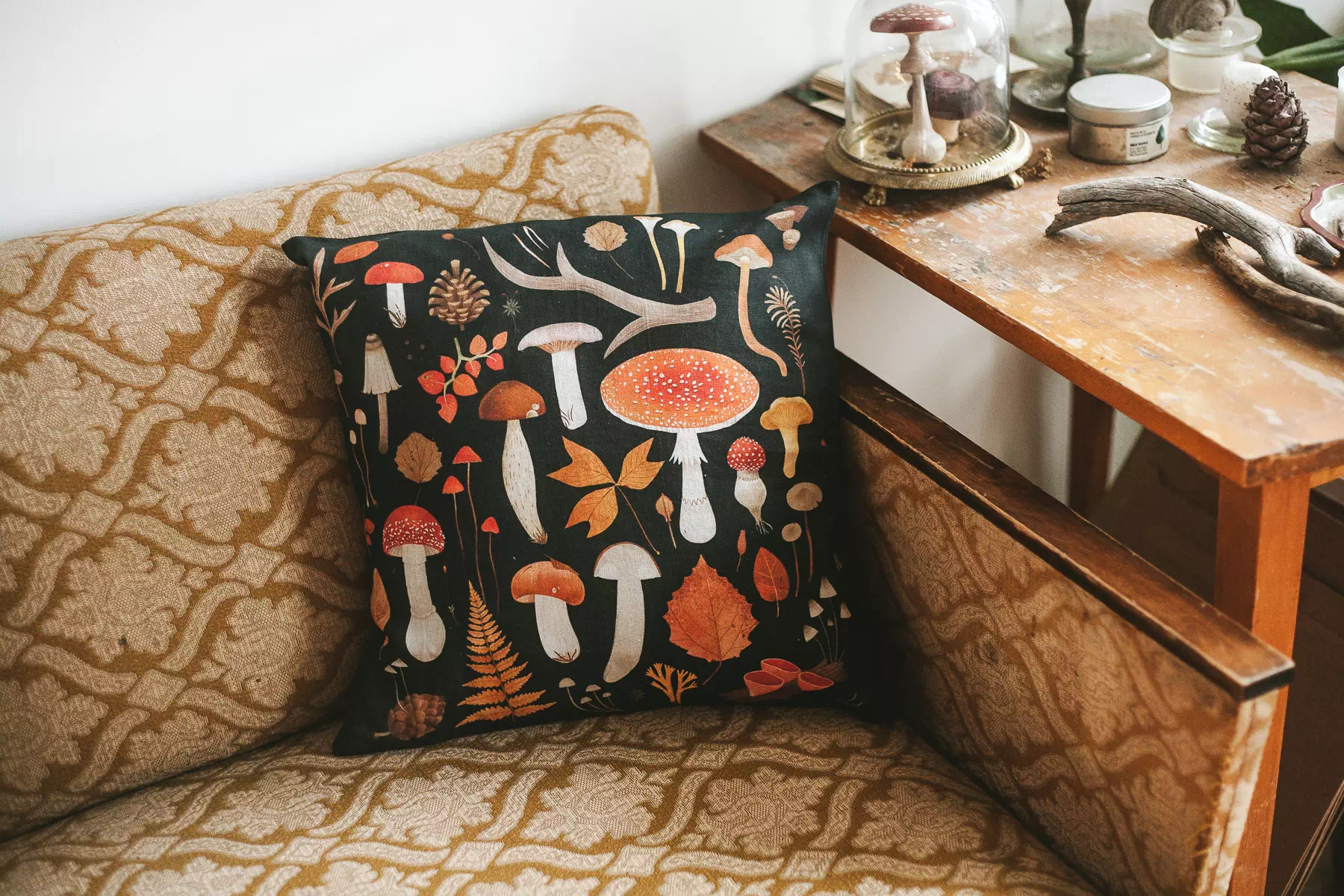 Наволочка на декоративную подушку с изображением мухомора станет ярким стильным дополнением интерьера. Добавит ему уюта и особенного настроения. Отлично подходит для загородного дома или дачи, террасы, балкона, помещений, выполненных в стиле рустик, прованс или «эко». Можно использовать как чехол для подушек на диван, кресло или стул.