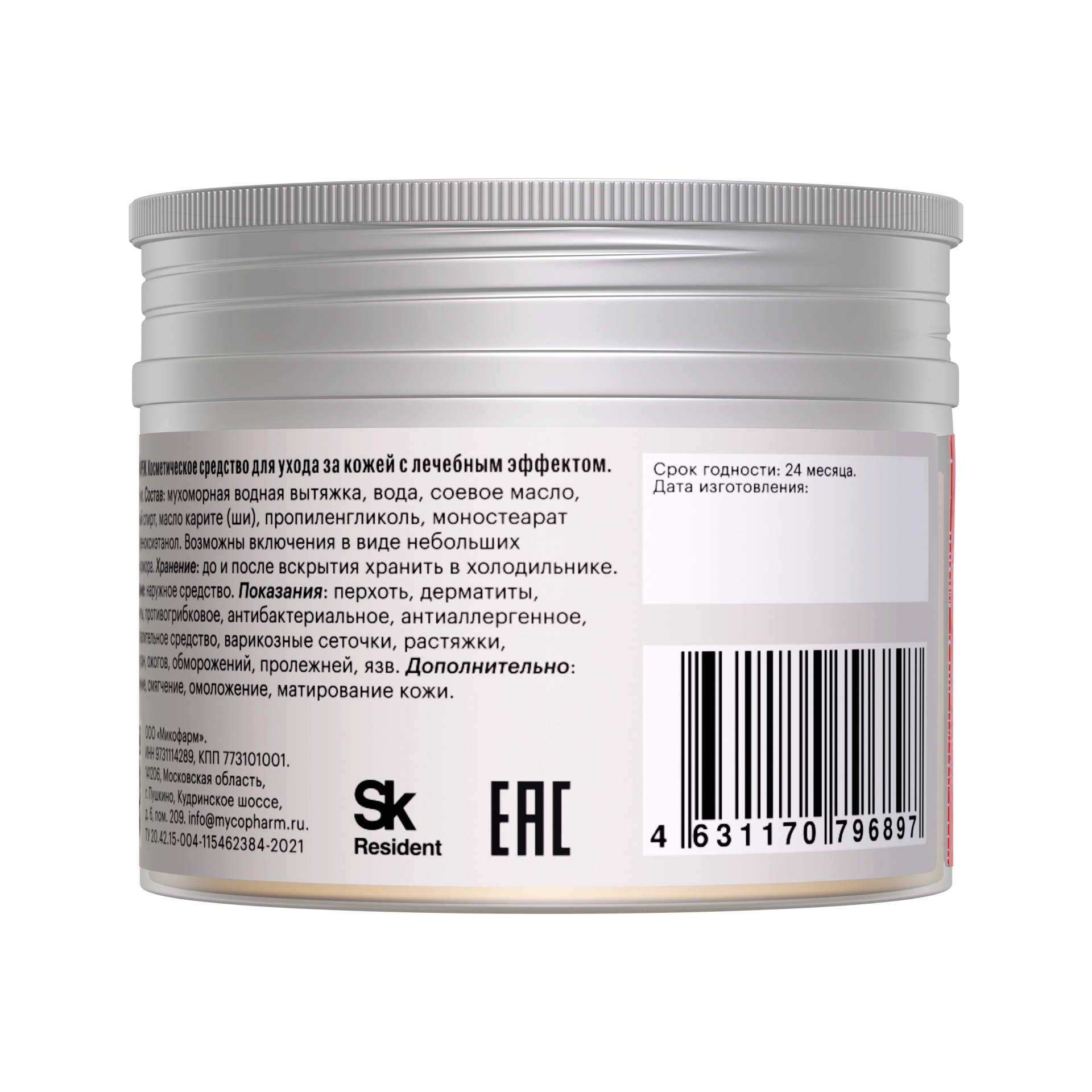 Густая мухоморная водная вытяжка, вода, соевое масло, цетеариловый спирт, масло Карите (ши), пропиленгликоль, моностеарат глицерина, феноксиэтанол.