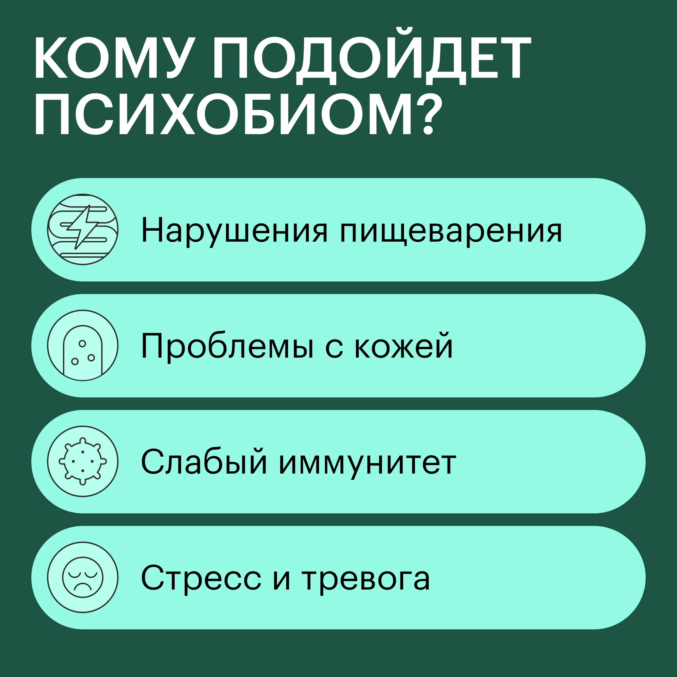 ПСИХОБИОМ подходит для людей, ведущих активный образ жизни, живущих в условиях стресса или испытывающих проблемы с ЖКТ.