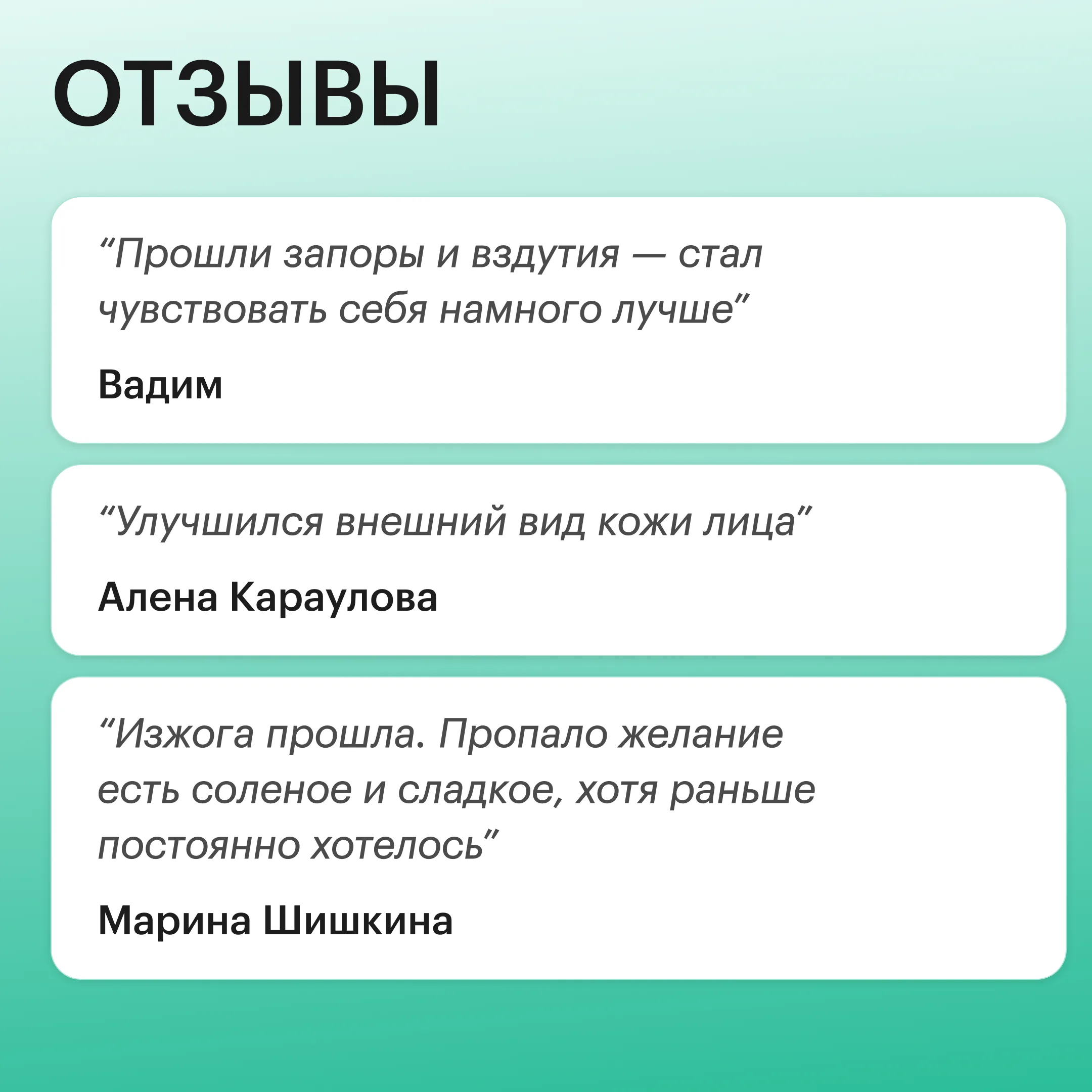 Комментарий: Создатель-гений. Готова руки целовать. Работает по всем пунктам. Теперь живот плоский. Вздутия и боли уходят. Заказала второй этап. Благодарю ❤️ ❤️ ❤️ Работает мощно.