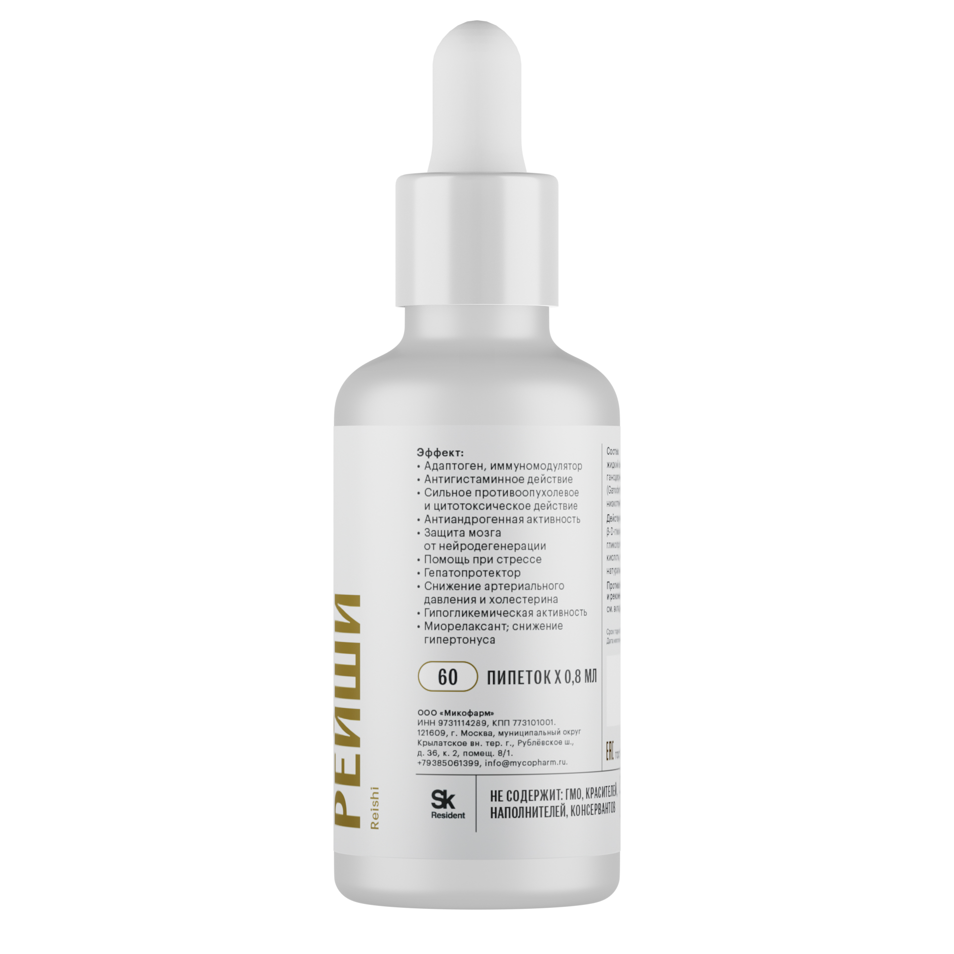 Рейши (Ganoderma lingzhi G. sichuanense) — универсальный иммуномодулятор, онкопротектор и антиоксидант с историей применения в несколько тысячелетий. В Китае его называют «грибом бессмертия» за способность повышать устойчивость организма ко всем патогенным факторам внешней среды. Рейши обладает доказанными гепатопротекторными и антиандрогенными свойствами. А также может быть использован как натуральное противотревожное средство в периоды повышенного стресса и применяться в качестве миорелаксанта и спазмолитика.