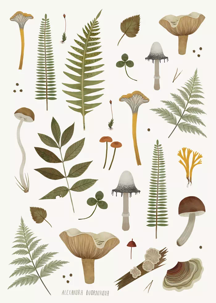 Набор стикеров «Папоротники и грибы» для любителей природы от российской художницы Александры Дворниковой.