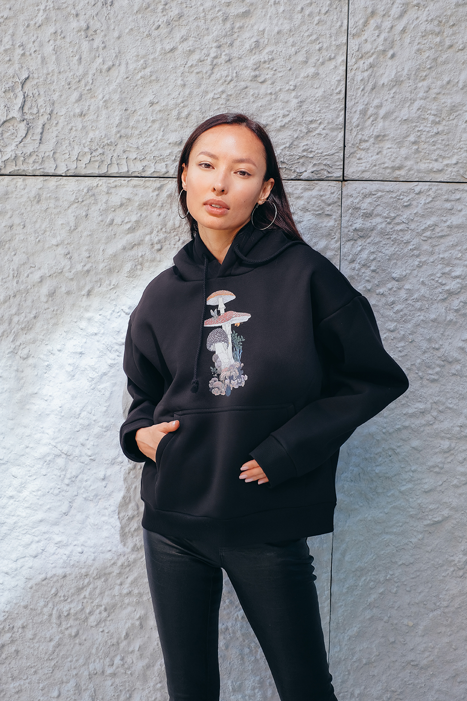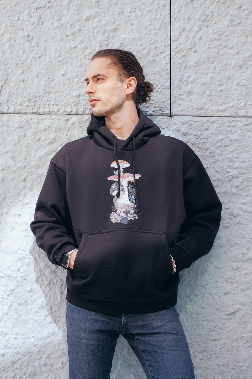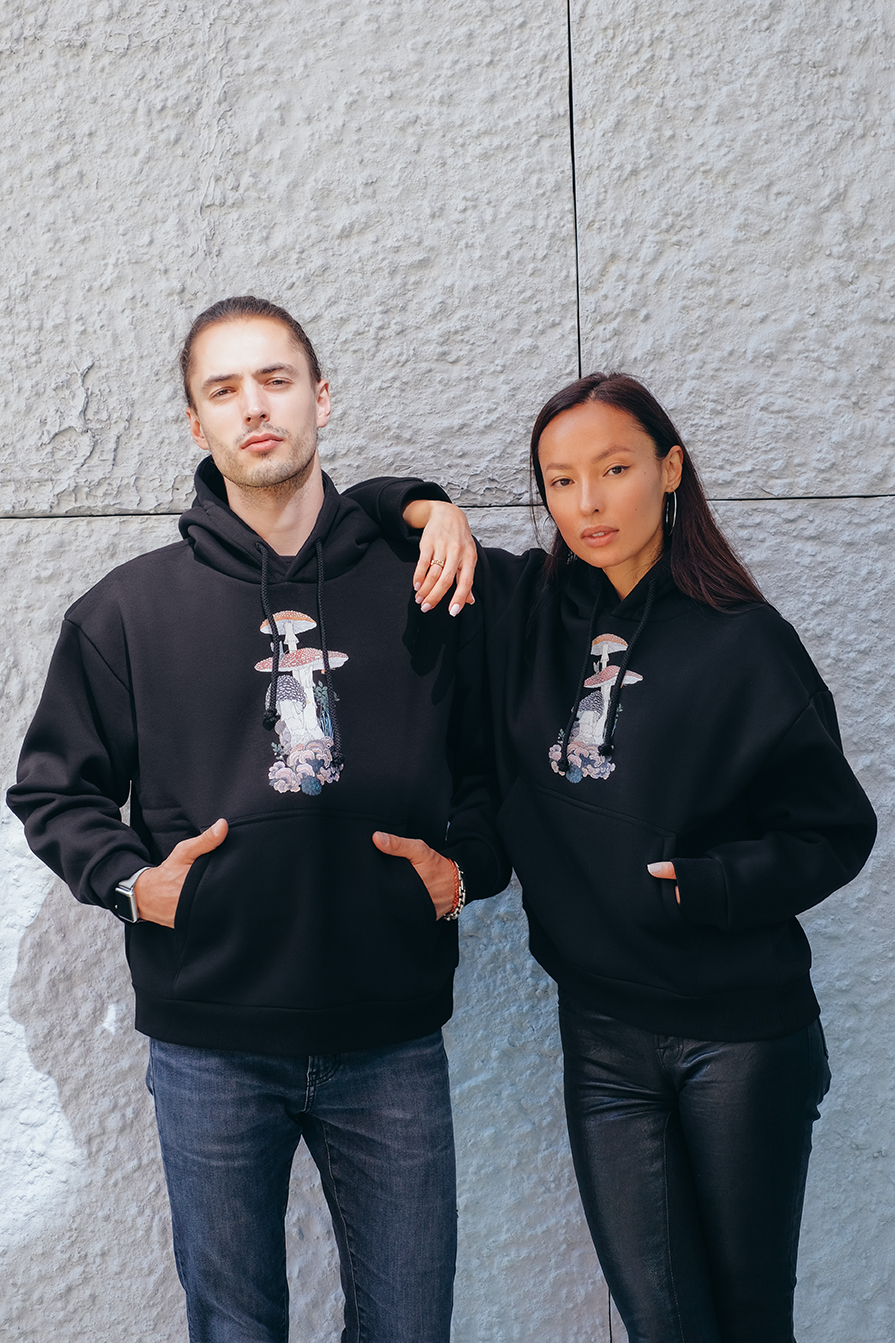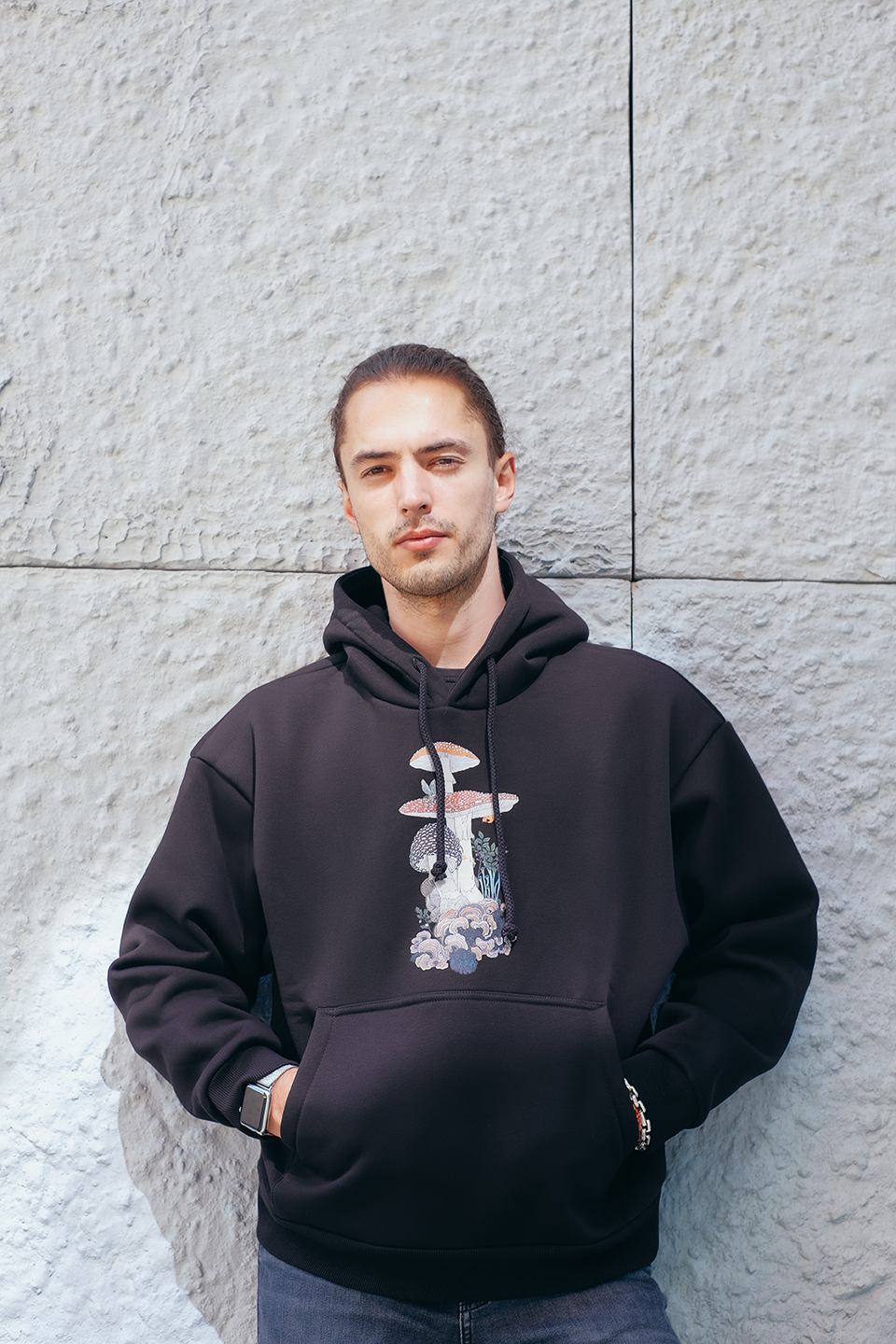 #FuncFungi представляет наш первый мерч – толстовка-худи c капюшоном «Грибы». Один большой карман-кенгуру и один боковой на молнии. Удобная практичная модель с красочным изображением мухоморов. Принт остается насыщенным и четким даже после многочисленных стирок.